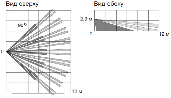 | Угол зоны (Охранные датчики) | 90° объемная |